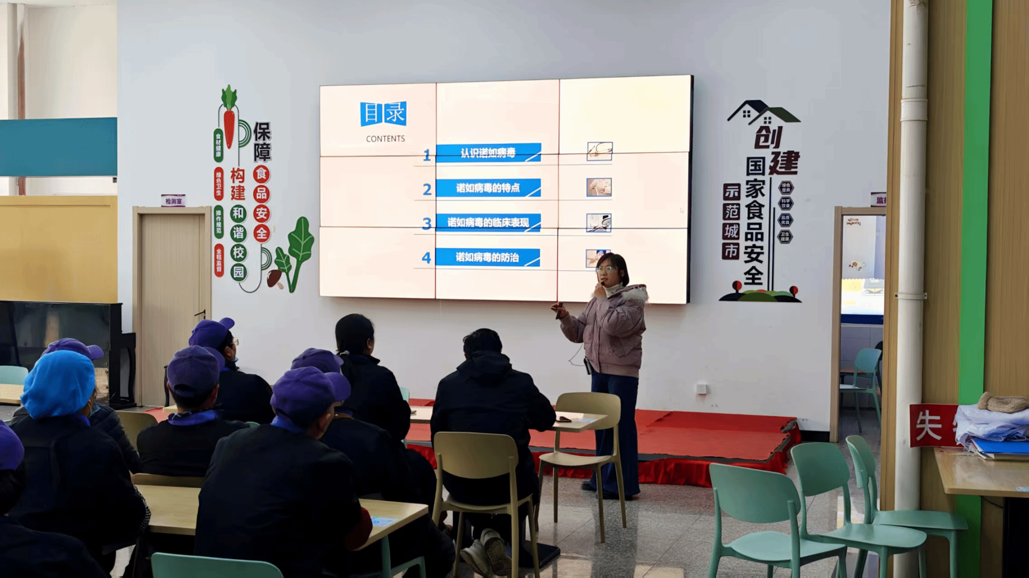为贯彻落实党中央、国务院关于秋冬季传染病防控工作的决策部署,切实做好学校诺如病毒胃肠炎疫情防控工作,保障广大师生身体健康和正常教学生活秩序,全面提升食堂从业人员健康素养和食品安全保障能力,12月29日校医院联合膳食管理科组织开展食堂从业人员健康知识专题讲座。